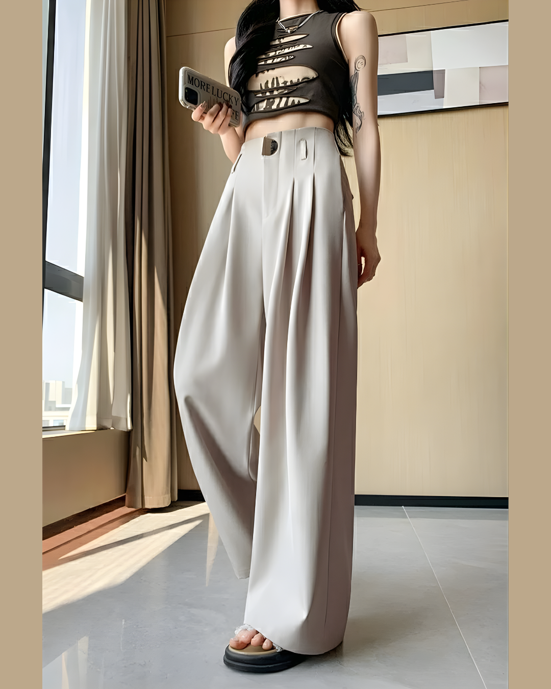 - Fit: High-waisted design to elongate the legs and create a flattering silhouette